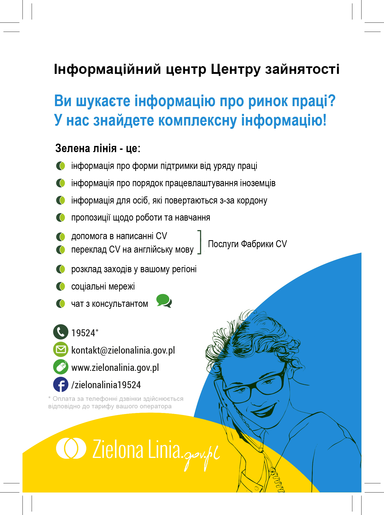 кімната №26 Powiatowy Urząd Pracy w Złotoryi, Al. Miła 18, 59-500 у годинах з 7.00 до 15.00 з понеділка по п'ятницю